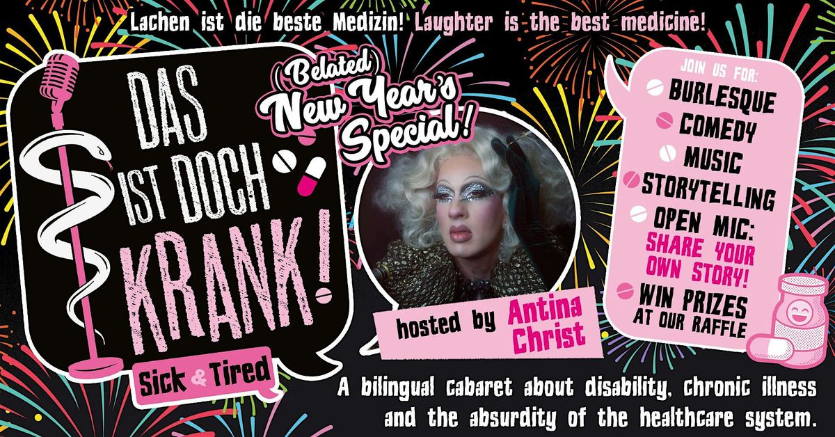 “Das ist doch krank! /Sick and Tired” is a bilingual cabaret, open stage, and storytelling event that humorously addresses the topics of disability, chronic illness, and situations involving the healthcare system in general.