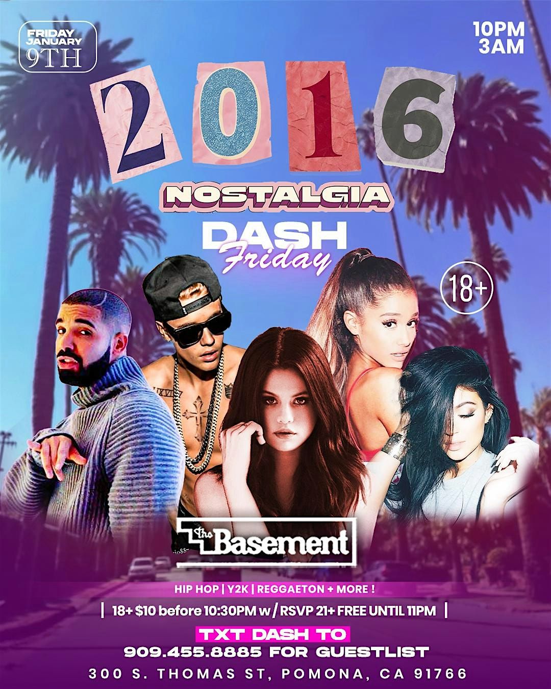 Get ready to travel back in time to 2016 with DASH FRIDAYS - NOSTALGIA, where we'll be vibing to all the hits from that unforgettable year!