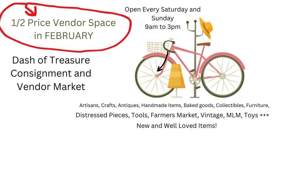 Dash of Treasure February Half Price Vendor Space Plus come sign up for Consignment space starting in March