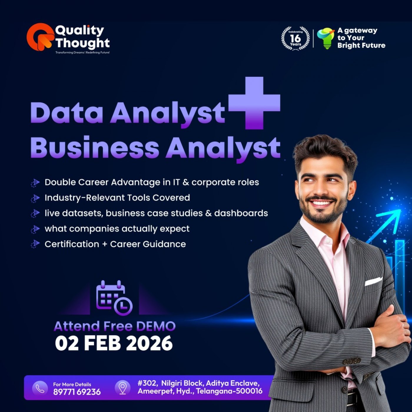 Quality Thought, 302, 3rd Floor, Nilgiri Block, ADITYA ENCLAVE, Kumar Basti, Ameerpet, Hyderabad, Telangana 500016, India