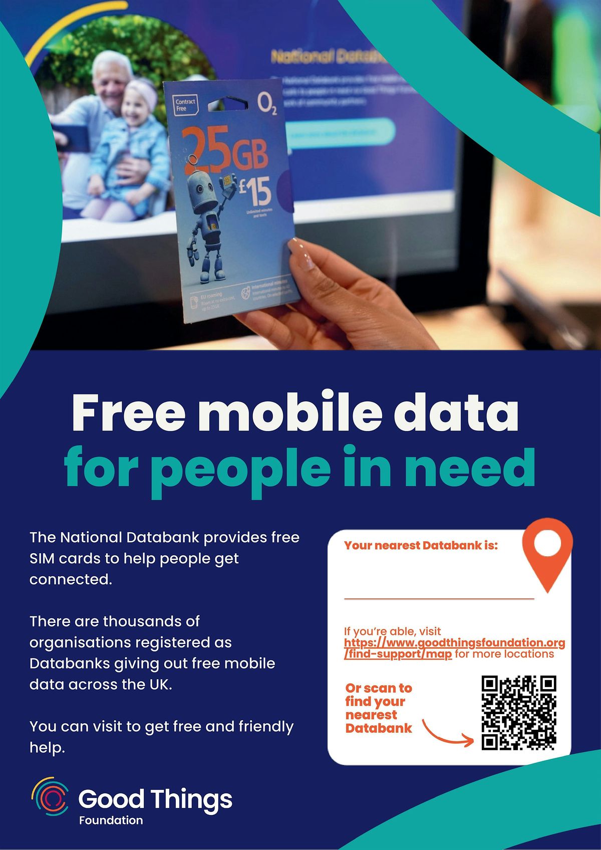 Pick up a FREE mobile sim card which includes 25GB of data and unlimited UK calls and texts monthly for 12 months.