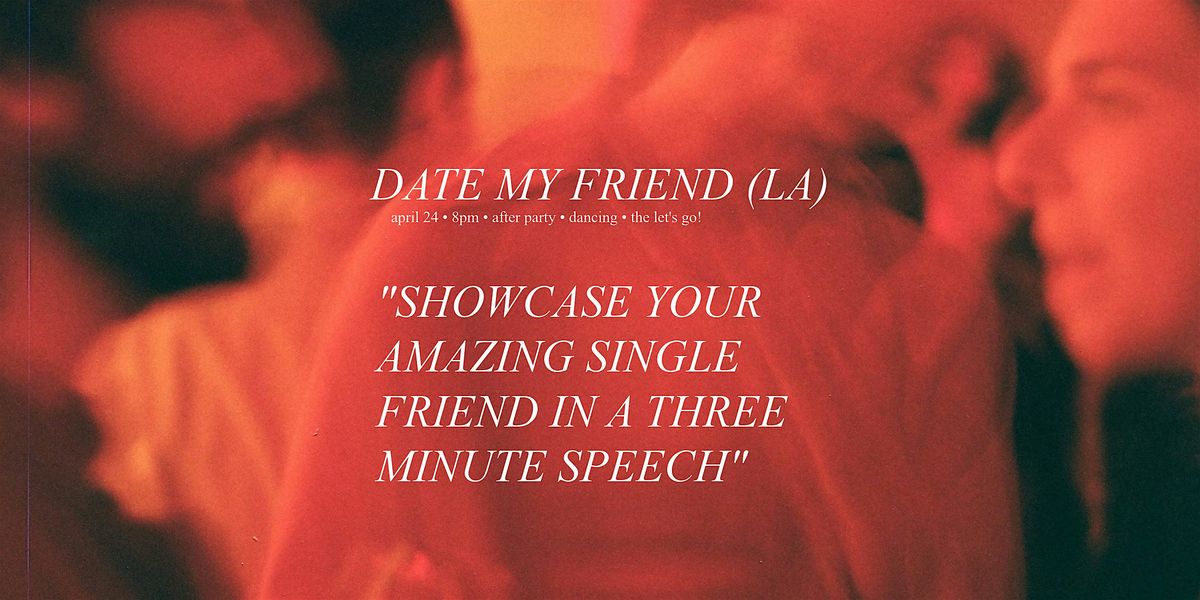 DATE MY FRIEND(LA) aims to bring people together offline. Watch people hop on stage & introduce the audience to their amazing single friend. We’ll hear about how they met, what makes them tick, and try to understand why they’re still single. After the last pitch, we'll all mingle. As the night continues....doors will open to the public for our afterparty ''GET DOWN TONITE", and we'll dance until the doors close. it is a disco club after all. go analog, bring your pals, and hang.