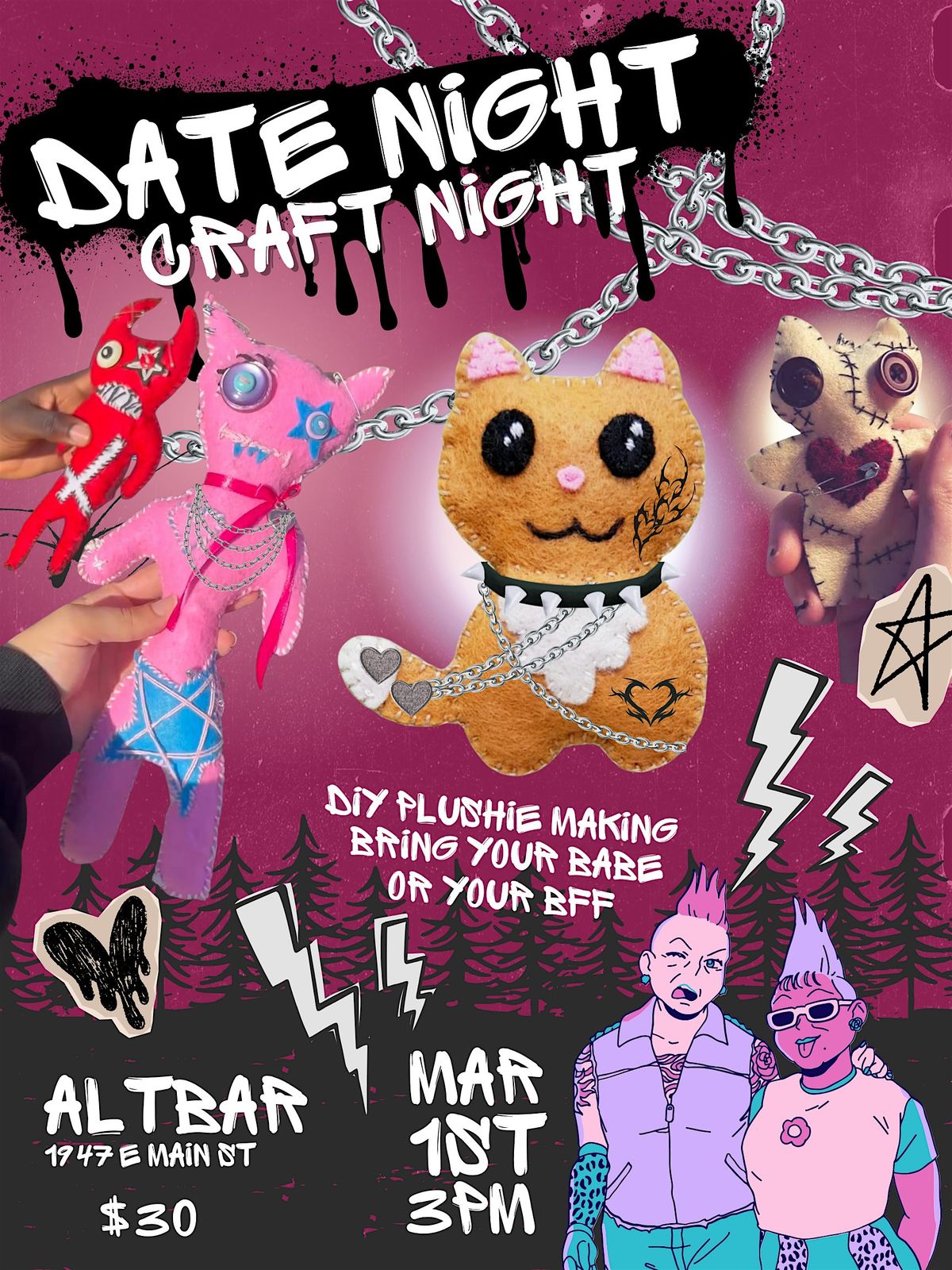 Join us for our next Date Night, at AltBar! Create unique plushies with your date, your friend group, or come alone and meet someone new!About this Event