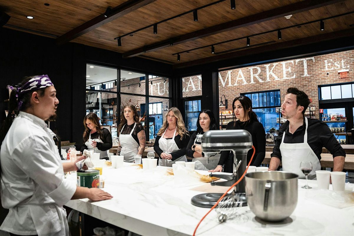 In this hands‑on class, our Chef Instructor will guide you—working in pairs—through crafting a cocktail, an appetizer, and an entrée for the ultimate evening out for two. You will be welcomed with a glass of wine, and each course will be thoughtfully paired with its own wine selection. Cook together, sip together, and enjoy the fun.