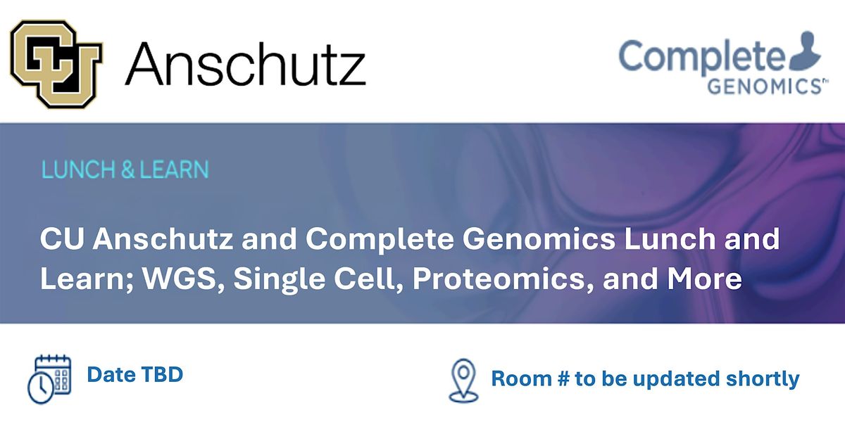 Register for the Complete Genomics/University of Colorado Anschutz Lunch & Learn to receive updates on time and location of the upcoming event.