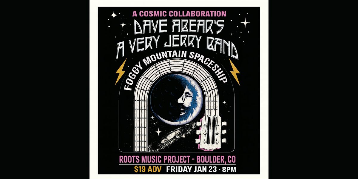 Featuring guitarist Dave Hebert (AKA A'Bear), the former lead guitarist for Melvin Seals and JGB, performing the iconic catalogs of the Grateful Dead and Jerry Garcia Band with his signature style. Opening the night is Foggy Mountain Spaceship, the cosmic trio that pushes the sonic limits of instruments with original compositions and unique twists on popular tunes, blending banjo melodies with rhythms that pulse like nebulae.