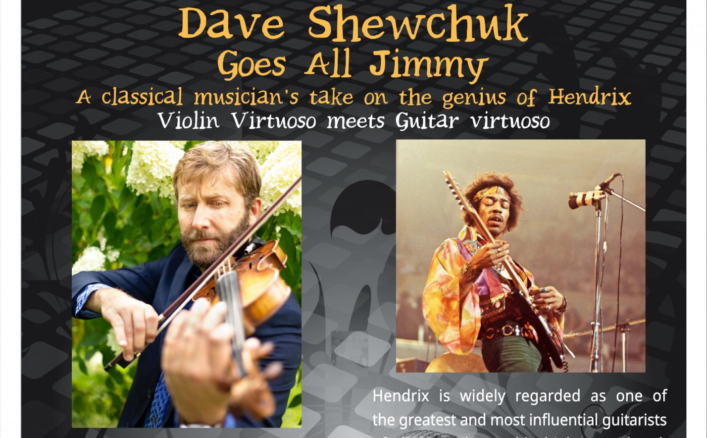 Violin virtuoso takes on guitar virtuoso at the UpFront Cafe, April 24, 2026. Dave Shewchuk, the Quinte Symphony's current concert master, will interpret the works of the legendary Jimi Hendrix. Dave has already showcased his amazing multi-instrumental talent having previously interpreted The Beatles and The Rolling Stones. Dave has performed as a soloist from Ontario to Vancouver and everywhere in between, winning the hearts of audiences with stunning creativity and originality.
