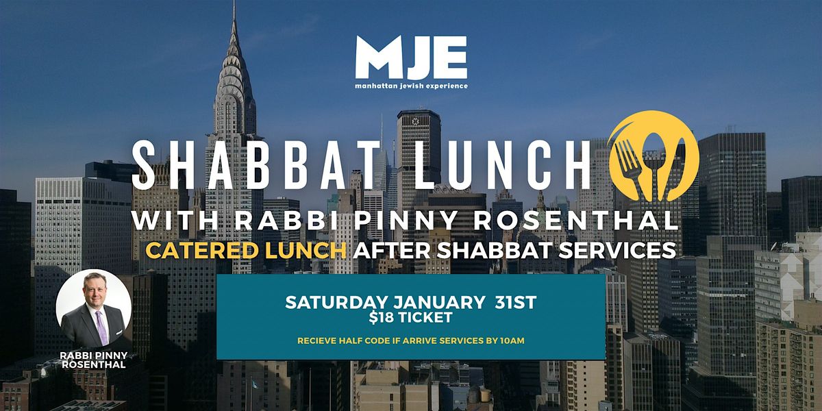 Free catered lunch to all who RSVP AND attend shabbat morning services by 10 AM.