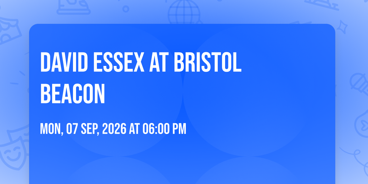 🌟 Be part of history at David Essex at Bristol Beacon, an extraordinary gathering that will captivate your imagination! 🏛️ The prestigious Bristol Beacon in Bristol, EN sets the stage for an unforgettable experience on September 7th, 2026 at 06:00 PM. ✨ They are bringing together the finest elements of entertainment and innovation to create moments that will take your breath away. From the moment you arrive, you'll be immersed in an atmosphere of wonder and excitement. 🎯 This carefully planned event ensures every guest experiences something truly special. 🎊 Early booking is recommended for this must-attend event of the season!