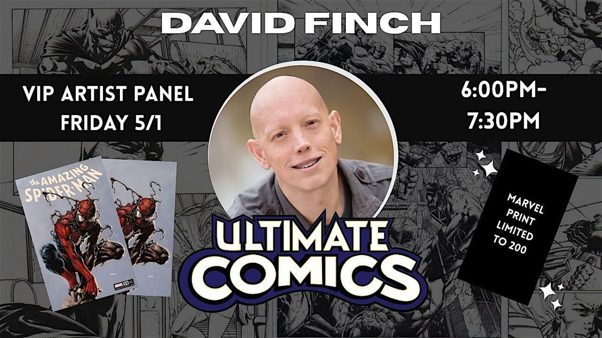 Friday 5/1 from 6:00PM-7:30PMWe're already SO excited to be hosting the extraordinary David Finch at our Cary location for FCBD! Plus we have something EXTRA special in store for those who join us for our Exclusive VIP Panel on Friday 5/1.Join us for a ticketed event Friday, May 1st from 6PM-7:30PM with legendary comic artist David Finch! Finch will be joining us for a 20-30 minute panel followed by signings and selfies with the artist. All tickets purchased will come with a set (Trade dress & Virgin) of our Amazing Spider-Man #35 Ultimate Comics Exclusive, as well as an exclusive Marvel official David Finch print, made just for his visit here and limited to just 200 copies!Bulk signing discounts may also be available depending on quantity. Want to get your comics slabbed? CGC Facilitators will be present for the signing portion of the event! CGC Signatures have an Artist Fee of $20 all other other CGC fees can be discussed the CGC Facilitator - The Comic Book Presser!Tickets are available for purchase through the link below, will be limited to a maximum of 50! With every ticket purchased we will be making a donation to our FCBD charity partner, the American Cancer Society!VIP Panel Ticket $99Includes Panel Entry, ASM #35 Set ($45 value), Exclusive Finch Print ($30 value), 1 Free Signature (additional signatures available for $15)