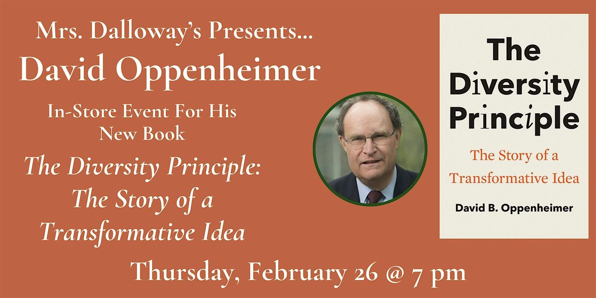 Join us at Mrs. Dalloway's Bookstore on Thursday, February 26 when David Oppenheimer comes to the store to present his new book The Diversity Principle: The Story of a Transformative Idea. David will sign books after the presentation.