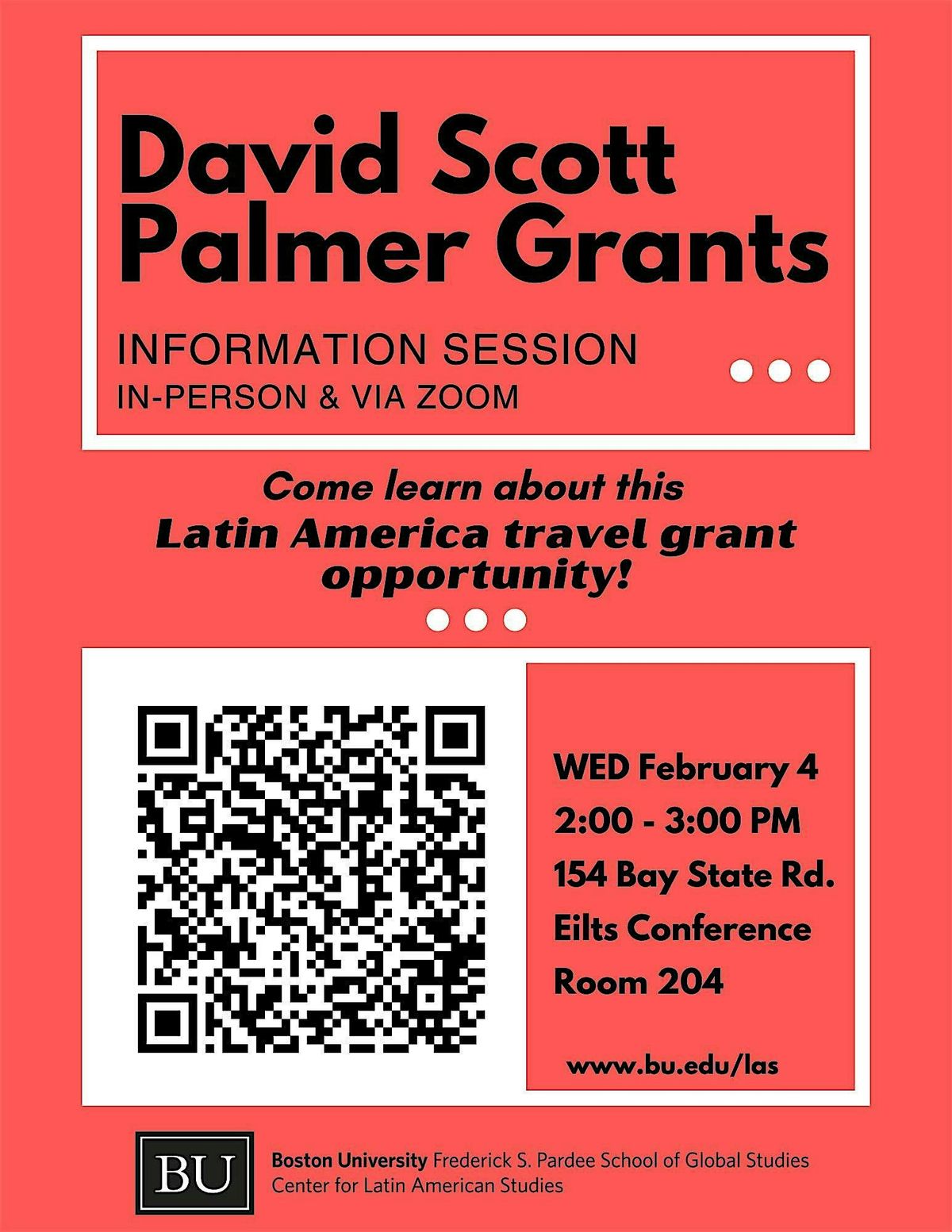 Join us on February 4th for an information session on the David Scott Palmer Grants. This event offers prospective applicants a comprehensive overview of eligibility criteria, application procedures, and helpful tips for crafting a successful proposal. Open to both undergraduate and graduate students, the session provides valuable guidance and a chance to have your questions answered.