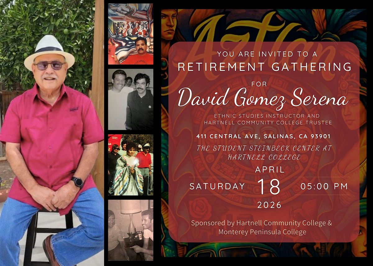 You are cordially invited to a retirement gathering honoring David Serena for his 50+ years of dedication to uplifting and educating the students of Monterey County in higher education.