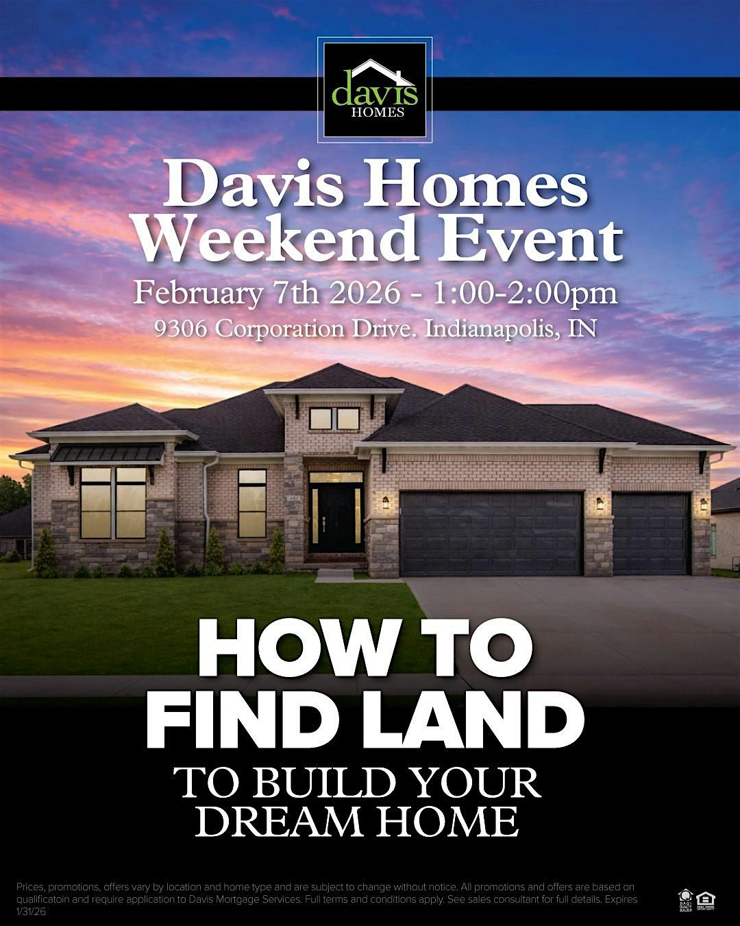 Join Davis Homes for an educational, no-pressure event designed to walk you through how to find the right land to build your home on your lot. From understanding zoning and utilities to evaluating location, lot size, and long-term value, our experts will break down the process step by step.