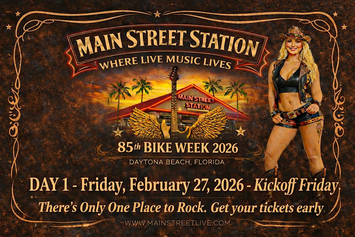 There’s only one place to rock — Main Street Station Celebrates 85th Anniversary Bike Week in Daytona Beach, Florida.