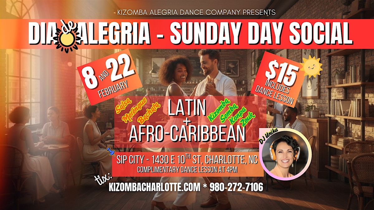 Latin (Salsa, Bachata, Merengue) and Afro-Caribbean Music (Kizomba, Semba, Konpa, Afrobeats, Zouk) will keep you dancing the entire afternoon!