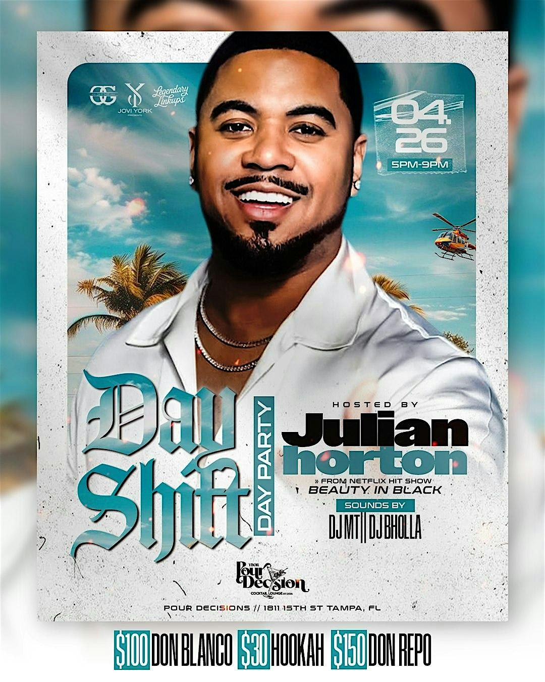 Kick back and vibe during our Day Shift Day Party with Netflix’s Beauty in Black star Julian Horton.About this Event