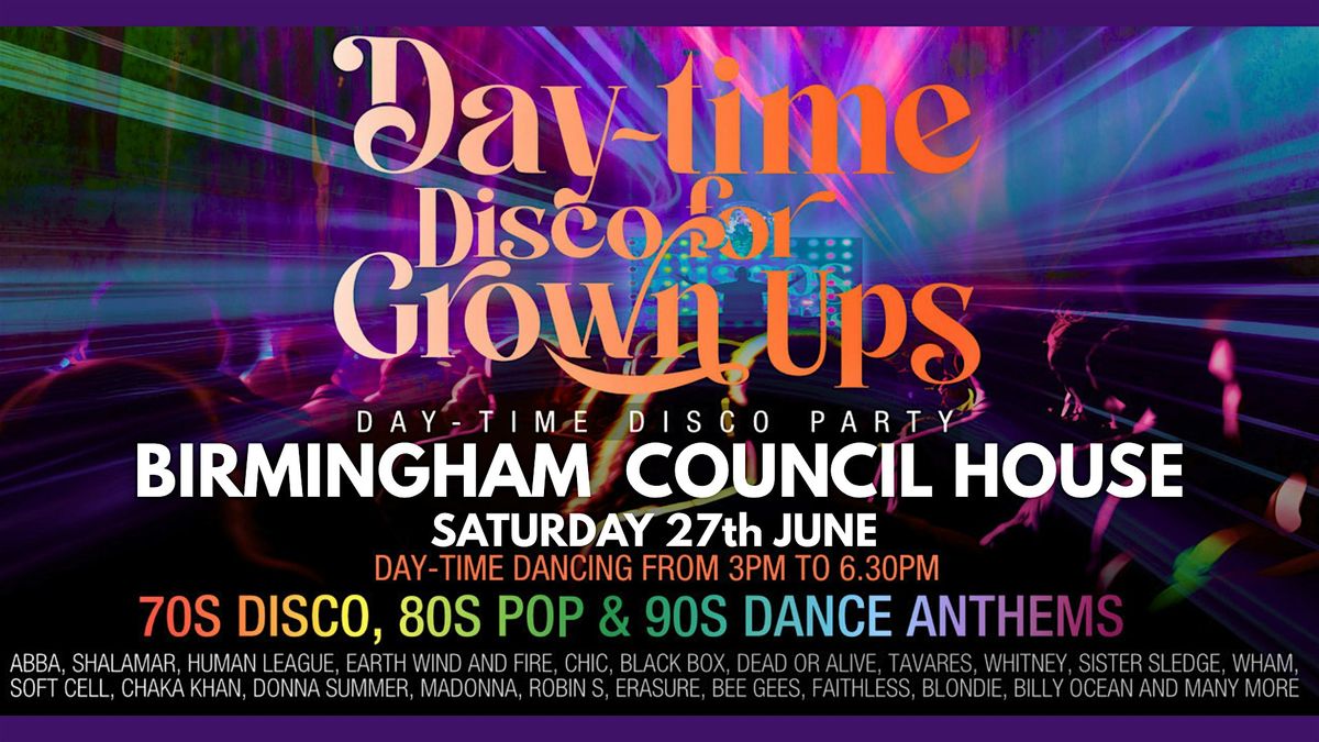 The legendary Discos for Grown ups disco party returns to the beautiful ballroom at Birmingham Coucil House on Victoria Square