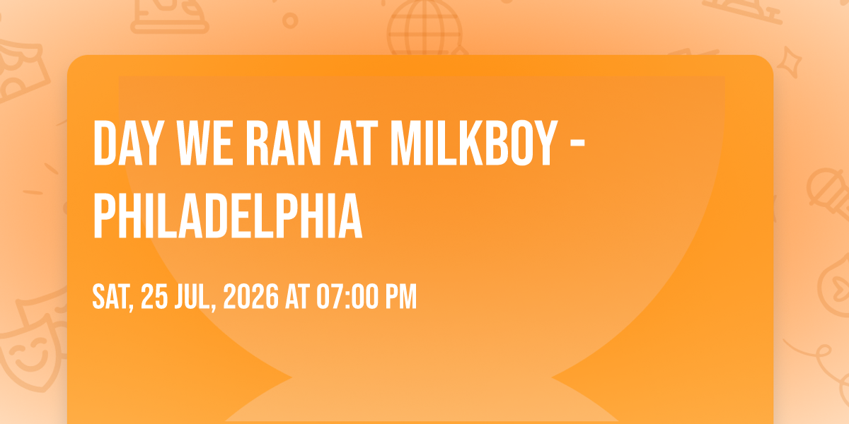 ✨ Enter a world of endless possibilities at Day We Ran at MilkBoy - Philadelphia, where every moment tells a story! 🏛️ The stunning MilkBoy - Philadelphia in vibrant Philadelphia, PA transforms into a realm of wonder on July 25th, 2026 at 07:00 PM. 🌟 They have crafted an experience that goes beyond the ordinary, combining elements of surprise, delight, and pure entertainment. Every detail has been thoughtfully considered to ensure your journey with us is nothing short of extraordinary. 🎯 Join fellow adventure seekers and memory makers in this celebration of imagination and innovation. 🎊 Reserve your spot today and be part of something truly special!