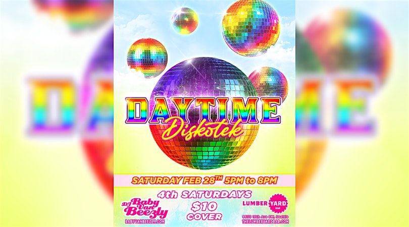 Rise, shine, and werk at Daytime Diskotek —a glitter-soaked, joy-fueled dance party for the divas who wanna dance their faces off AND be in bed by 9. Join us at The Lumberyard Bar on 2/28 from 5pm–8pm for a colorful, high-vibe party, packed wall-to-wall with gay anthems, queer classics, disco delights, pop bangers, and feel-good heaters that keep the dancefloor popping while the sun’s still up. Come serve looks, shake it down with your people, scream-sing the choruses, hydrate responsibly, and still make it home in time for skincare and cozy pajamas—because balance, babe