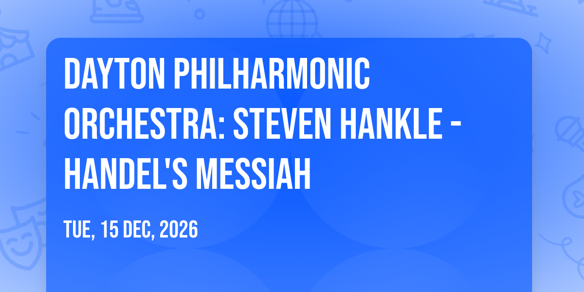 🎉 Welcome to Dayton Philharmonic Orchestra: Steven Hankle - Handel's Messiah, where dreams come alive and possibilities are endless! 🏛️ Join us at Winsupply Theatre At Schuster Performing Arts Center in the heart of Dayton, OH for an event that defies expectations. 📅 On December 15th, 2026 at 07:00 PM, be part of something truly extraordinary as we bring together innovation, entertainment, and pure magic. ✨ Every aspect has been carefully designed to ensure an unforgettable experience for all our guests. Whether you're seeking adventure, inspiration, or simply a break from the ordinary, this event promises to deliver beyond your wildest dreams. 🎊 Prepare for a journey into the extraordinary!http://maps.seatics.com/MeadTheatreAtSchusterPerformingArtsCenter_EndstagewithBoxes_2022-12-10_2022-08-01_0940_08012022_103442_SVGC_tn.png