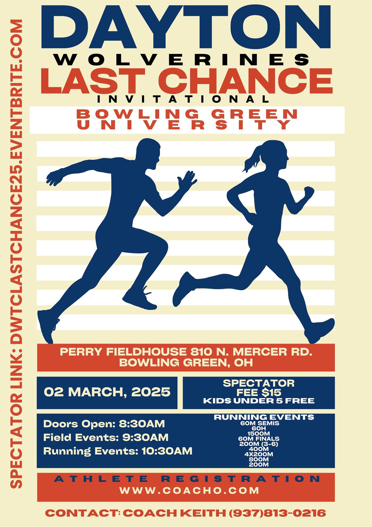 The Last Chance Track Meet hosted by the Dayton Wolverines Track Club marks the final opportunity for athletes to showcase their skills!