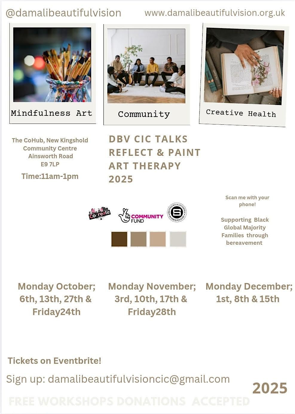 Allies are welcome to attend Reflect & Paint but must note that there will be a £5 donation fee that will go toward Damali Beautiful Vision CIC community work.