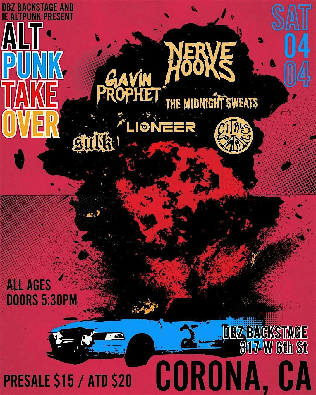 DBZ Backstage & IE AltPunk Presents: Nerve Hooks, Gavin Prophet, The Midnight Sweats, Lioneer, Sulk, Citrus Park @ 6:00 PM!About this Event