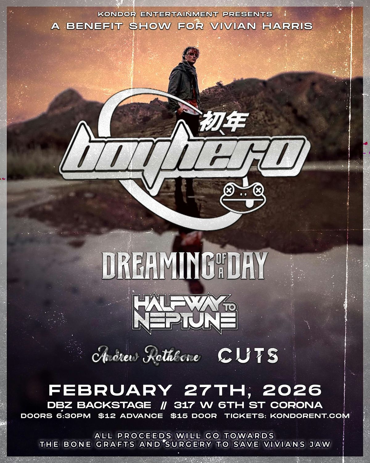 DBZ Backstage & Kondor Entertainment Presents: boyhero, Dreaming Of A Day, Halfway To Neptune, Andrew Rothbone, and CUTS - Doors @ 6:00 PM!About this Event