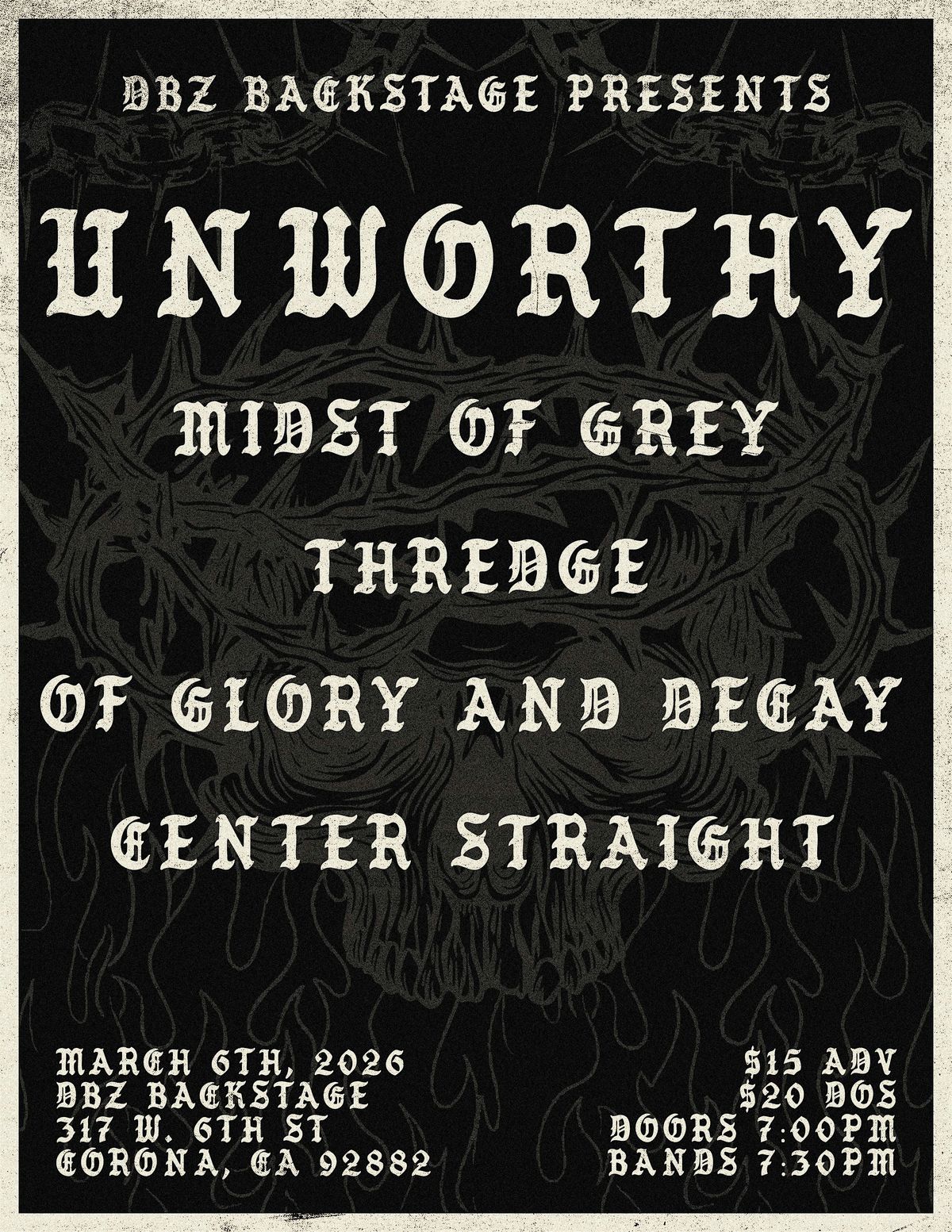 DBZ Backstage Presents: Unworthy, Midst Of Grey, Thredge, Of Glory And Decay, and Center StraightAbout this Event