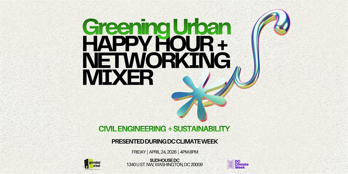 Join us for the Greening Urban Happy Hour Networking Mixer during DC Climate Week on Friday, April 24, 2026 from 4PM to 8PM at Sudhouse DC.