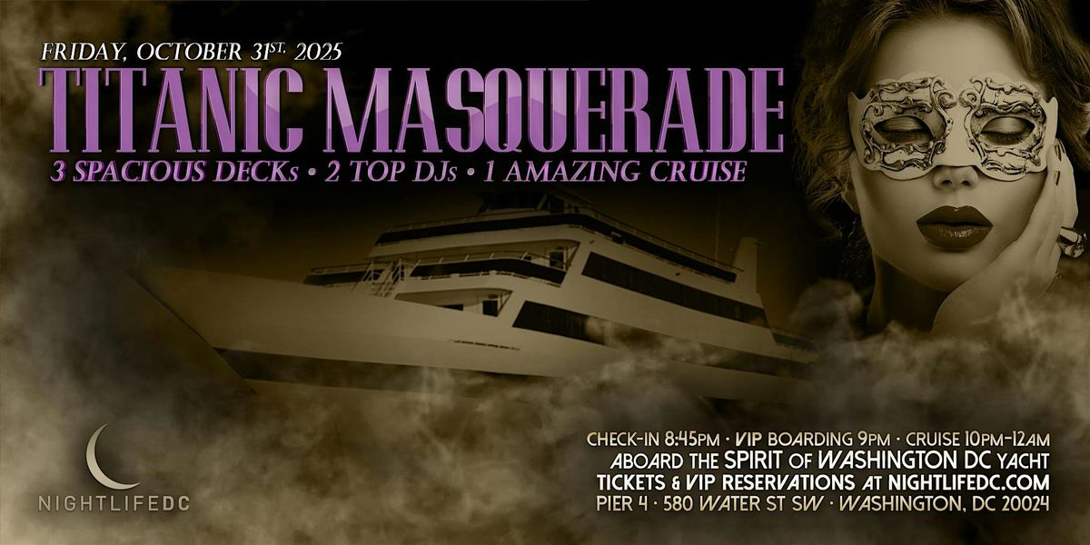 From the creators of Pier Pressure, Halloween Night on Friday, October 31st 2025: Prepare for the ultimate Halloween party cruise aboard the Spirit of DC that'll be transformed into a haunting Titanic packed with 400+ raised from the dead of the historic Titanic that sank 100+ years ago.