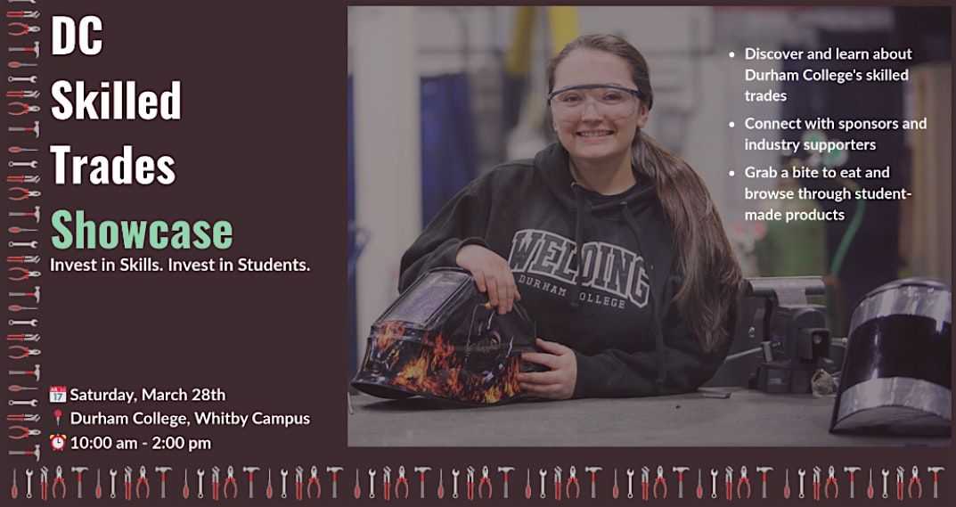 Join us from 10:00 a.m. to 2:00 p.m. on Saturday, March 28, at Durham College’s Whitby Campus for the DC Skilled Trades Showcase, proudly hosted by Durham College’s Event Planning students as part of their experiential learning. Featuring Durham College’s highly respected trades programs, this showcase plays a vital role in helping students continue to develop their skills, industry knowledge, and professional confidence.
