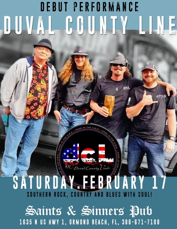 Duval County Line -- performing your favorite Southern Rock, Country and Blues tunes with Soul! Debut performance: Saturday, February 17 from 1-5pm!