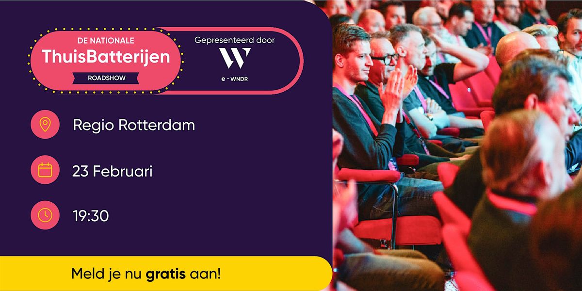 Kom naar de Nationale ThuisBatterijen Roadshow! E-WNDR nodigt je uit voor een onafhankelijke informatieavond om je klaar te stomen voor de toekomst van energie.