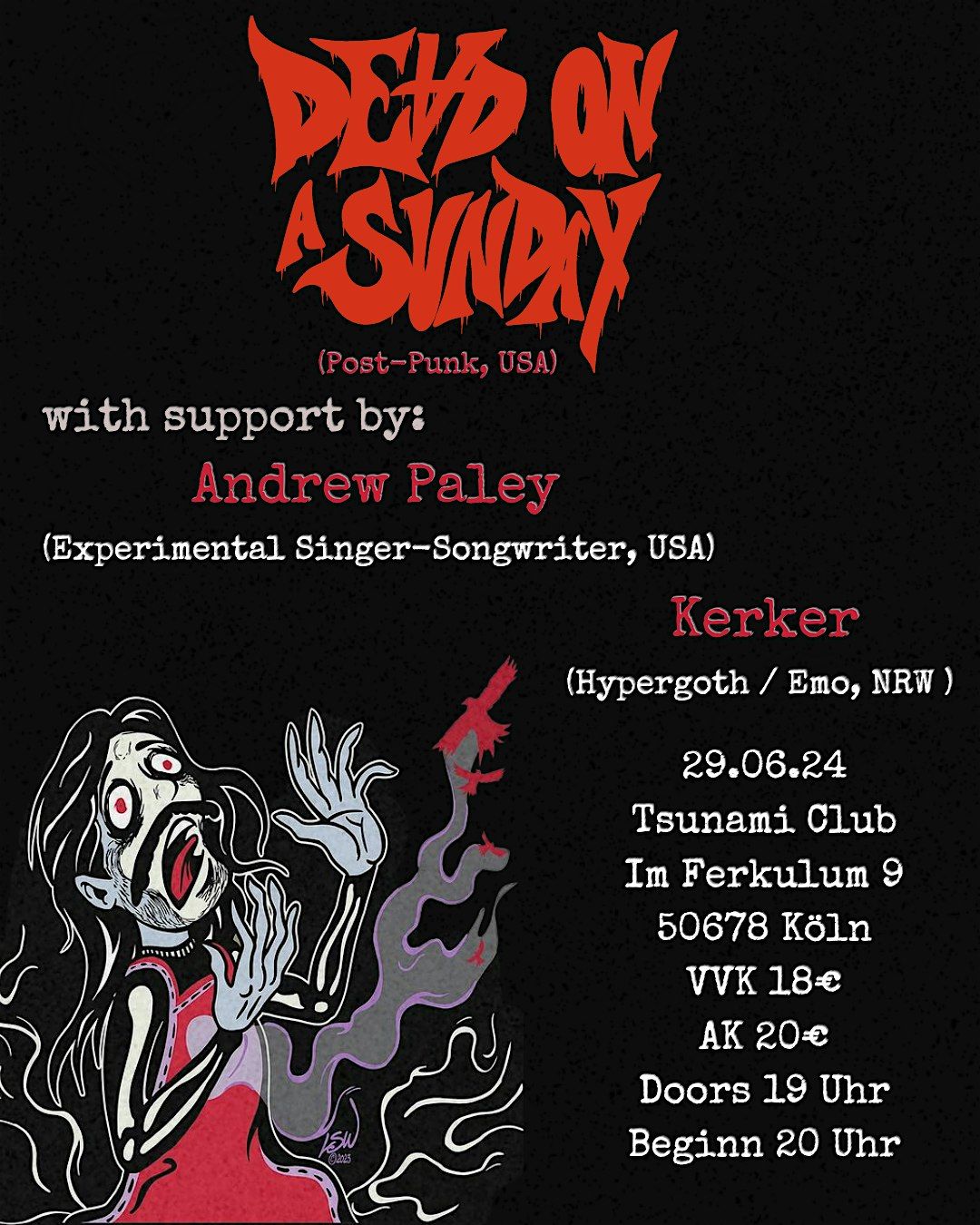 Dead On A Sunday's live show is dangerously electric and emotionally charged, with theatrical makeup and sometimes orchestral instrumentation. The project's success quickly materialized after several TIK TOK posts reached viral status, with the most popular post comparing Ryan's vocals to those of Bob Belcher from the popular Fox television series Bob's Burgers, which fans have named the term "Bob-Core" to describe the band's sound. The viral videos have garnered several million views to date and have made Dead On A Sunday an active fan base of dark music lovers and the artist's debut LP as well as the recently released "Things To Do In Denver When You're Dead" EP.