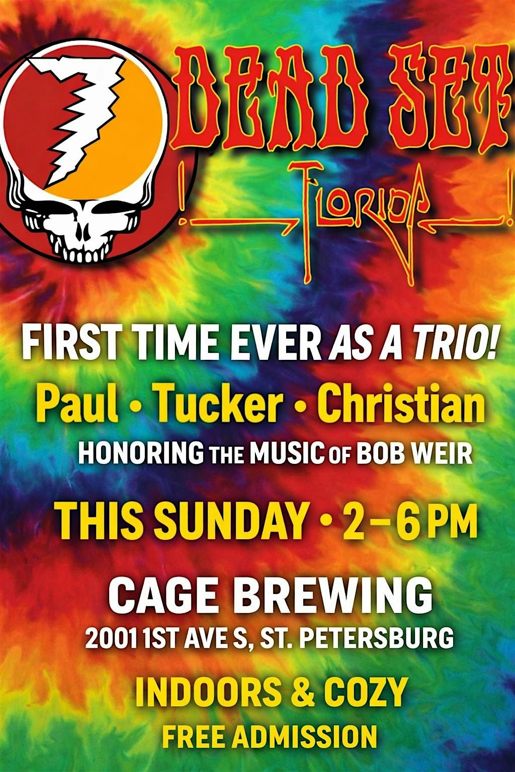 THIS SUNDAY — WE HEARD YOU, DEAD HEADS. For the longtime Dead Heads.For the folks who love the music but don’t love a midnight start anymore.You asked — and we listened.This Sunday, Dead Set Florida is doing something truly special.For the first time in nearly 10 years,the three original members — Paul • Tucker • Christian —will take the stage together as a TRIOto honor and celebrate the music of Bobby Weir.Just the three of them.Stripped down. Intentional. Intimate.And happening in the afternoon, exactly how many of you older Dead Heads have asked for. Cage Brewing + Kraken Joe’s Pizza This Sunday 2:00 – 6:00 PM FREE ADMISSIONIt’s going to be cool outside, so we’re moving INSIDE —warm, cozy, heaters on, early start, early finish.All the music, none of the late-night grind.Expect: Bob Weir songs Space, groove, and deep listening A proper Sunday Dead vibe Kraken Joe’s PizzaBest pizza in the galaxy Scratch Italian favorites, paninis, salads — come early, eat well, settle in. All ages with adult Rain or shine — we’re indoors and dialed in. 2001 1st Ave South, St. Petersburg, FLThis isn’t just another Dead show.This is a moment — built for the heads who’ve been riding the bus a long time. Dead Heads… this one’s for you. cagebrewing.com krakenjoespizza.com#DeadSetFlorida#DeadHeads#BobWeir#GratefulDead#SundayDead#DeadTrio#CageBrewing#KrakenJoesPizza#StPeteMusic#FreeLiveMusic