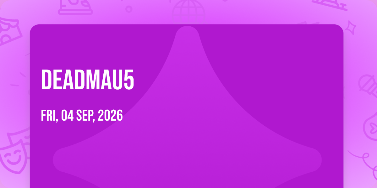 🌟 Step into a world of wonder at Deadmau5, where extraordinary moments await! 🏛️ Located at Alaska State Fair Borealis Theatre in dynamic Palmer, AK, this event will become the talk of the town. 📅 Join us on September 4th, 2026 at 03:00 PM for a celebration that defies the ordinary. ✨ This curated experience brings together the best of entertainment, culture, and community spirit. Every detail has been thoughtfully planned to ensure an unforgettable experience for all our guests. 🎯 Take advantage of this opportunity to be part of something special. 🎊 Early registration is recommended as space is limited!http://maps.seatics.com/AlaskaStateFairBorealisTheatre_RsvdLawn_2024-05-23_2024-05-23_0956_05232024_100451_SVGC_tn.png