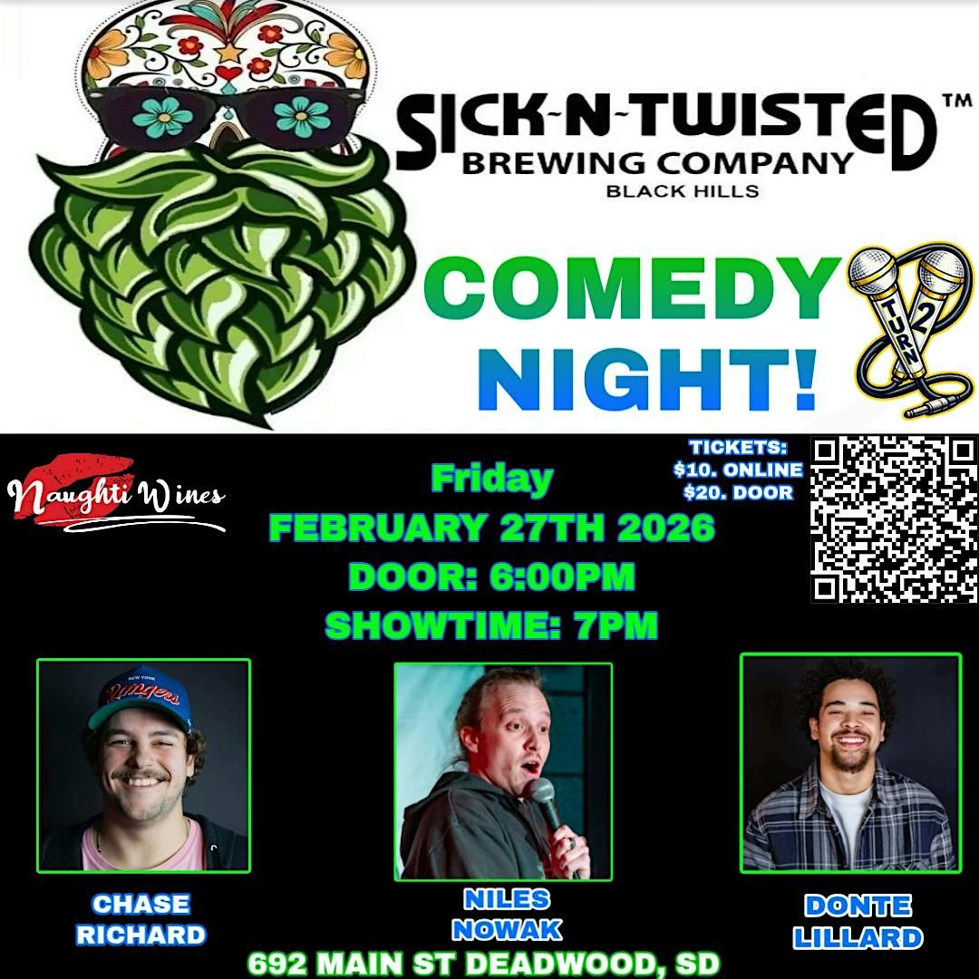 Welcome to the Deadwood Sick-N-Twisted Comedy Night happening at Sick-N-Twisted Brewery! Get ready for a night filled with laughter and good vibes on February 27, 2026 at 7:00 PM (Mountain Time). Join us for a hilarious lineup of comedians who will have you rolling on the floor with laughter. Don't miss out on this evening of fun and entertainment!