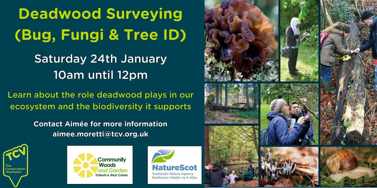 There will be opportunities to learn about bugs, fungi and tree identification as we examine the different pieces of deadwood.