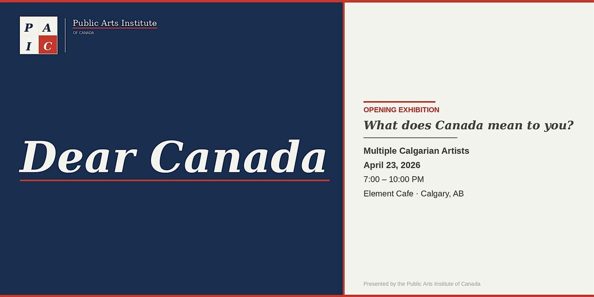 On April 23rd, the Public Arts Institute of Canada invites you to the inaugural exhibition of Dear Canada — a national travelling art series exploring the question at the heart of our country: What is Canadian culture?