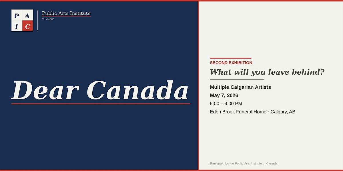 On May 7th, the Public Arts Institute of Canada invites you to the second exhibition of Dear Canada — held, deliberately, at Eden Brook Funeral Home in Calgary. We chose this space not to be provocative, but because it asks something of us the moment we walk through the door: What are we doing with the time we have?