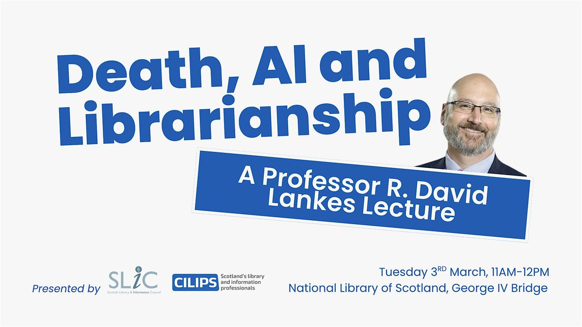 In this one hour talk Professor Lankes will be speaking on the topic of his recent book Triptych: Death, AI and Librarianship and will look at how libraries in Scotland, the US and elsewhere can save lives by fostering greater social participation and combating key societal challenges such as the rising tide of deaths of despair. Professor Lankes believes that libraries that serve cities, towns, schools, hospitals, governments, law firms and academic institutions will all be needed to push back attacks of anti-intellectual forces, take up opportunities for lifting communities, and fight a growing wave of anti-democratic trends in global politics.