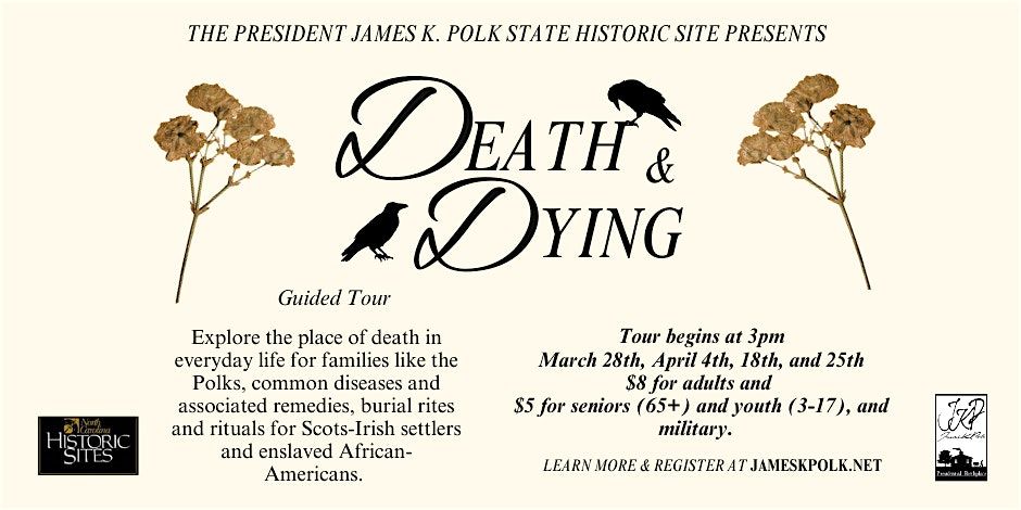 Join us as we explore the place of death in everyday life for families like the Polks, common diseases and associated herbal remedies, as well as burial rites and rituals for Scotts-Irish settlers and enslaved African-Americans. Additionally, the tour will delve into the history of the Polk Site Cemtery.