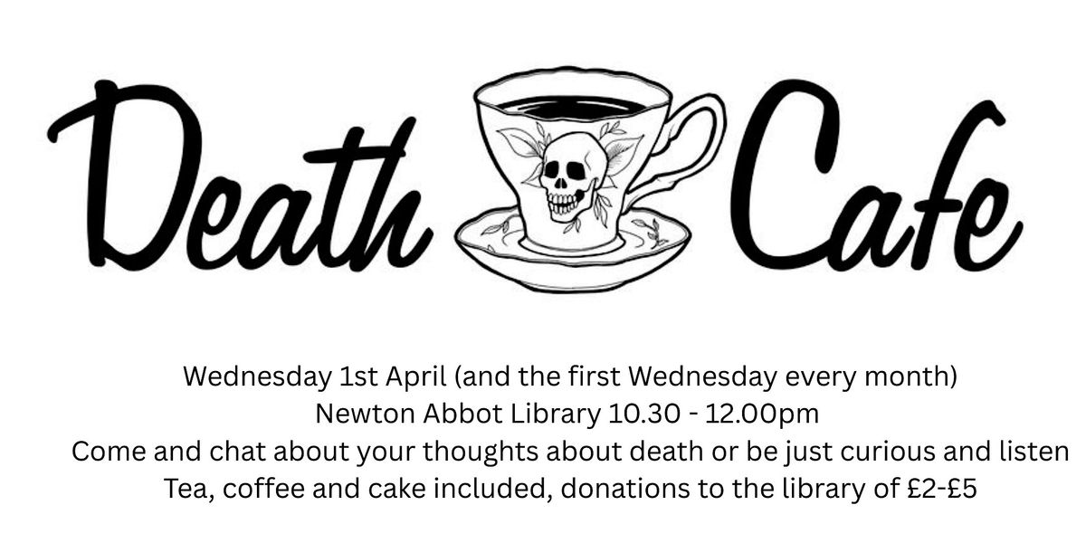 Join us for Death Cafe Newton Abbot, a relaxed, informal gathering where we chat openly about death over tea and cake. It’s a safe space to share stories, ask questions, and break the taboo around death. Whether you're curious, grieving, or just want to talk, everyone’s welcome. Come connect with others in person and explore this important topic with warmth and kindness.