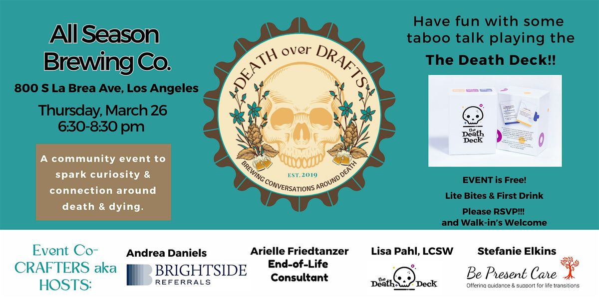 Death over Drafts (Happy Hour) started with a brewing vision to bring people together and create meaningful connections by combining two passions—craft beer and conversations on end-of-life.....drafting a new narrative on death dying and grief!