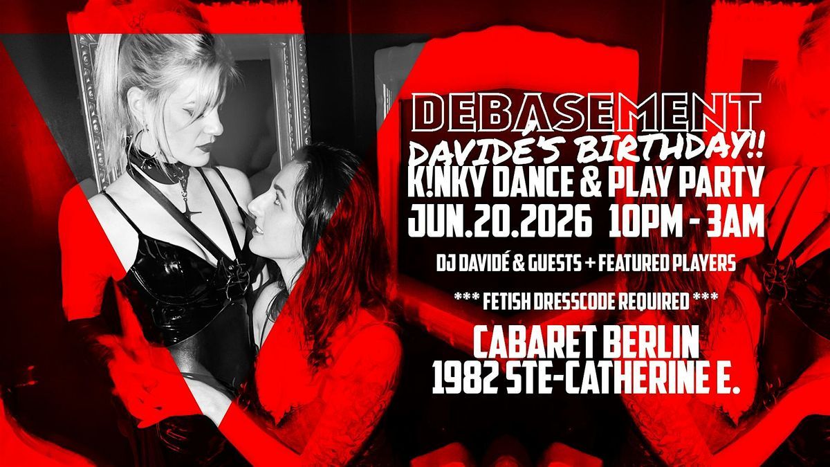 DEBASEMENT returns for a very special edition at Cabaret Berlin! June 20th is founder & resident DJ Davidé's BIRTHDAY edition, with special out of town guests coming for the occassion. This one will be one NOT TO MISS and will probably sell out!!