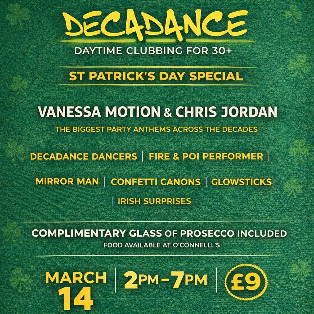 30+ day dance event in Kirkcaldy on the 14th of March. DJs, performers, mirrorball dancers, glow sticks, Irish twist complimentary Prosecco. 2-7pmMusic Genres : Pop, Hip Hop, Country/Americana, EDM