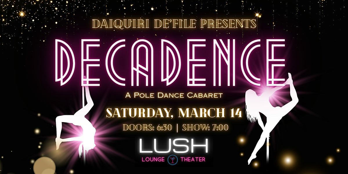 Welcome to Decadence: A Pole Dance Cabaret! Join us at LUSH Lounge & Theater for a night of mesmerizing performances that will leave you in awe. Our talented dancers will showcase their skills on the pole in a captivating and elegant show. Sit back, relax, and enjoy the sultry atmosphere as our performers take you on a journey through the art of pole dancing. Don't miss out on this unique event that promises to be both entertaining and unforgettable. Grab your tickets now and get ready for a night of pure decadence!