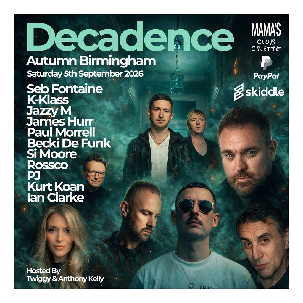 Decadence returns to our Digbeth home, joined by Seb Fontaine, K-Klass, Jazzy M, Paul Morrell, James Hurr (Toolroom) & more...Artists